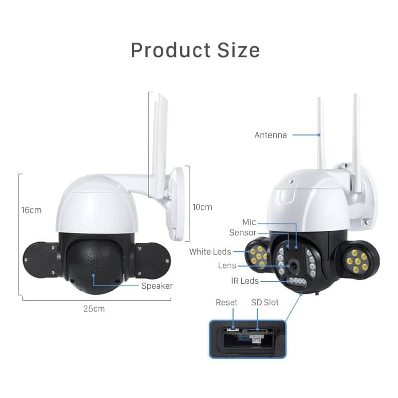 این رسته از دوربین ها با نامهای فست دام (fast dome)، اسپید دام (speed dome) و پی تی زد (PTZ) شناخته می شوند. نوع تحت شبکه و بی سیم کوچک آن (مینی اسپیددام وای فای) که محصول مورد نظر ماست دارای قابلیت های بسیاری برای برطرف کردن نیاز مصرف کننده جهت پایش محیط می باشند. این دوربین قابلیت چرخش به صورت افقی (Pan) تا 330 درجه و همچنین عمودی (Tilt) تا 90 درجه را داراست بنابراین پوشش بسیار خوبی از محیط ارائه می دهد. قابلیت پشتیبانی از کارت حافظه تا 128 گیگابایت این امکان را می دهد که تا چند روز تصویر دوربین را ذخیره کند. این دوربین دارای دید شب رنگی (Warmlight) است و قابلیت تعقیب سوژه (َAutoTracking) دارد. در واقع این سیستم بعد از نصب در محیط در صورتی که شخصی وارد تصویر شود دستگاه آن را تشخیص داده و در جهت حرکت شخص گردش می کند. از دیگر ویژگی های این دوربین، قابلیت صدای دو طرفه، تعیین زاویه دید از پیش تعیین شده، اعلان هشدارتشخیص انسان، قابلیت اتصال به NVR و زوم دیجیتال می باشد. ویژگی مهم این دوربین بهره گیری از نرم افزار انتقال تصویر V380 PRO است که به راحتی و بدون مشکل تصویر را در اختیار کاربر قرار می دهد. ویژگی بارز این دوربین نسبت به دیگر همرده های خود کیفیت تصویر آن است که 5 مگاپیکسل می باشد و جزییات زیادی در تصاویر ضبط شده آن قابل تشخیص است. به طور خلاصه با استفاده از این دوربین و فقط با تامین اینترنت آن به راحتی می توان محیط را با پوشش خوبی زیر نظر داشت. به علت قابلیت های کاربردی، راحتی استفاده، قیمت مناسب و همچنین عدم نیاز به وسایل جانبی برای نصب و راه اندازی و استفاده، این نوع دوربین ها با استقبال مخاطبین مواجه شده است.